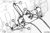 將渦輪增壓器執(zhí)行器冷卻液供應(yīng)管和回流管接頭安裝到電子執(zhí)行器內(nèi)。參考第 10 節(jié)中的步驟 010-041。