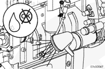 拆下機(jī)油冷卻器殼體的機(jī)油螺塞,并安裝注油接頭和軟管。
