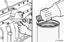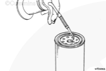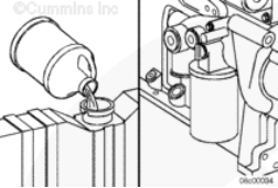 將 50 至 60 cc [1.7 至 2 oz] 清潔的機(jī)油注入渦輪增壓器供油口中。