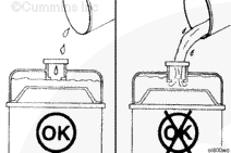 加注冷卻系統(tǒng)時,康明斯公司推薦使用優(yōu)質(zhì)水和完全按配比的防凍液以 50/50 比例混合后的溶液,或用完全按配比的冷卻液。完全按配比的防凍液或冷卻液必須符合 TMC RP329 或 TMC RP330 技術(shù)規(guī)范。
