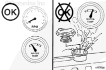 運(yùn)轉(zhuǎn)發(fā)動機(jī)至水溫達(dá)到 82°C [180°F],并檢查有無泄漏。
