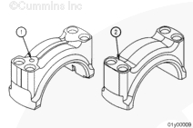 斷面分裂式連桿 (1) 可以在同一臺發(fā)動機(jī)中與鋸切式連桿 (2) 混用。關(guān)鍵的問題是了解正在維修的連桿是哪種型式,以進(jìn)行正確的軸承軸瓦選擇。