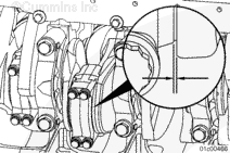 注: 連桿必須能夠在曲軸軸頸上橫向移動自如。如果連桿不能移動自如,拆下連桿蓋,然后確保軸瓦的尺寸正確。檢查曲軸和軸瓦上有無污垢或損壞。
