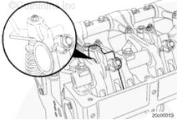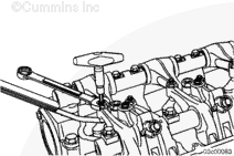 使用度盤式扭矩扳手(量程 0 到 150 in-lb)擰緊噴油器搖臂調(diào)節(jié)螺釘。如果調(diào)整過程中螺釘發(fā)出咔噠聲,則需要維修螺釘和搖臂。