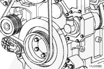 使用壓縮機(jī)驅(qū)動(dòng)裝置或盤車裝置沿順時(shí)針旋轉(zhuǎn)方向(從發(fā)動(dòng)機(jī)前方看)盤動(dòng)發(fā)動(dòng)機(jī)。將減振器上的 A 標(biāo)記與齒輪室蓋上的指示箭頭對齊。