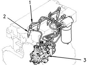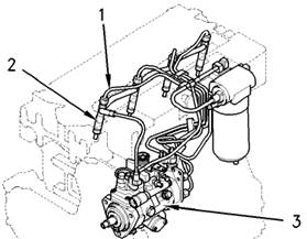 3.從噴油泵(3)和噴油器(2)上拆卸防塵蓋。從噴油管(1)上卸下防塵蓋。