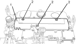 3.安裝罩(1)的調(diào)整螺釘(2)。將調(diào)整螺釘(2)擰緊至扭矩為9N·m(7lbft)。