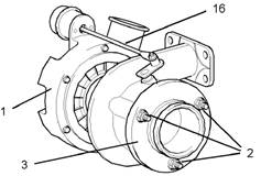 注:不要使用廢氣旁通閥的執(zhí)行器桿(16)來抬起渦輪增壓器(1)。