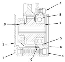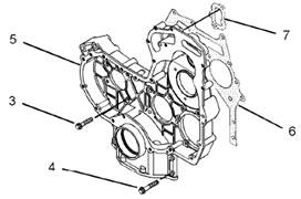8.使用內(nèi)六角螺釘(3和4),將附件驅(qū)動組件安裝到前殼體(6)的后面。擰緊六角頭螺釘至扭矩為22N·m(16lbft)。