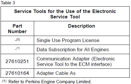 表3列出了所需的Perkins1204e-e44tta和1206e-e66ta柴油發(fā)動機服務工具使用電子服務工具。