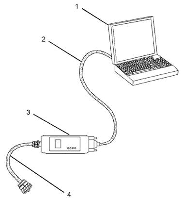 3。連接電纜(4)之間的“數(shù)據(jù)連接”結束通信適配器(3)和服務工具連接器。