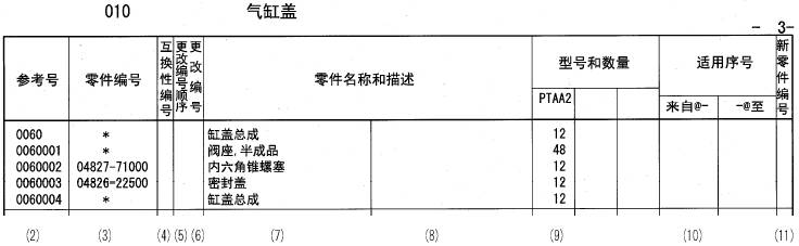 注釋:此欄里,標(biāo)有*符號的零部件作為備用零部件,不予以供應(yīng)。
