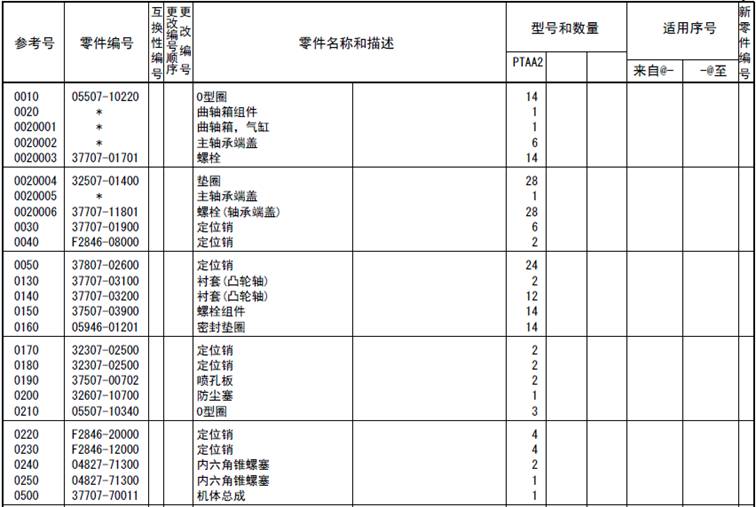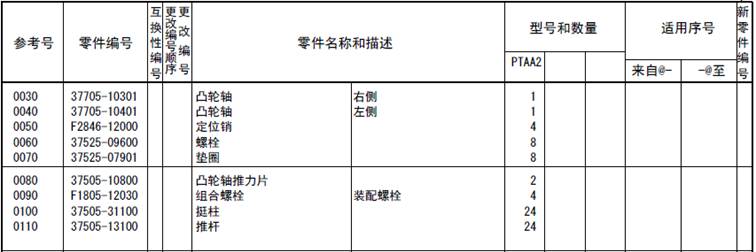 該零部件,在FROM 欄里表示從幾號開始能夠適用、在UPTO 欄里表示到幾號為止能夠適用。