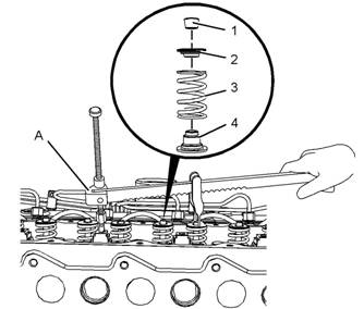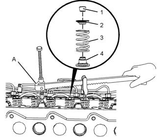 4.將工具(A)安裝在缸蓋的相應(yīng)位置中,以壓縮氣門(mén)彈簧(3)。