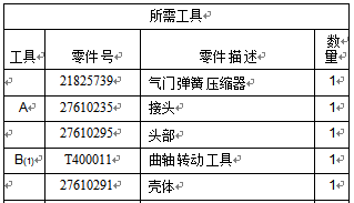 注:如果需要更換所有氣門(mén)彈簧,可以同時(shí)在兩個(gè)氣缸上進(jìn)行本程序。本程序可在下列氣缸上進(jìn)行。1和6,2和5和3和4。請(qǐng)牢記在拆卸氣門(mén)彈簧時(shí)不得轉(zhuǎn)動(dòng)曲軸。確保在從一對(duì)氣缸換到另一對(duì)氣缸之前安裝完所有氣門(mén)彈簧。如果所有氣門(mén)彈簧均不需要更換,則必須成對(duì)更換彈簧。
