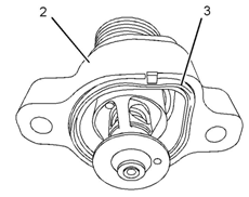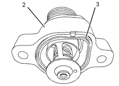 3從水溫調(diào)節(jié)器殼體(2)上卸下螺栓(1)。