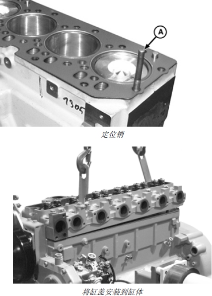 重要提示: 如果缸蓋在缸體上,調(diào)整缸蓋位置時(shí)會損壞缸墊。應(yīng)通過安裝和使用定位銷 (A) 將缸蓋定位在缸體上。
