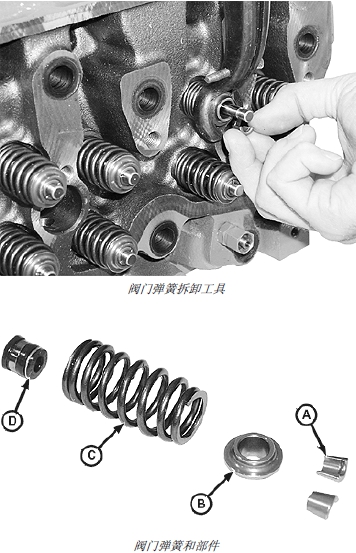 重要提示: 為保證閥門連接件排列整齊,進氣閥門、排氣閥門、閥門座鑲?cè)?、彈簧和固定環(huán)必須成對更換。而且,更換上述任一部件應(yīng)同時更換連接件。