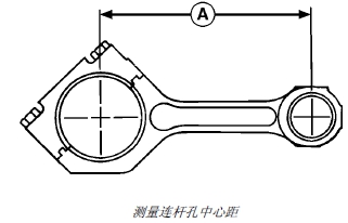 測量連桿孔中心距 (A)。將測量值與下列技術規(guī)格進行比較。必要時,應更換連桿。