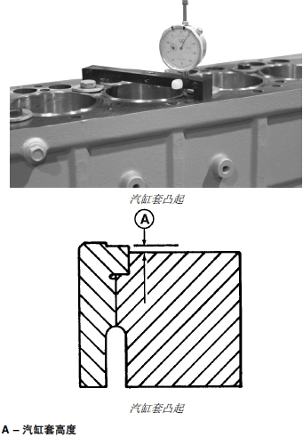 注意: 在新或舊汽缸體中安裝新汽缸套總成時(shí),必須檢查汽缸套凸出高度。