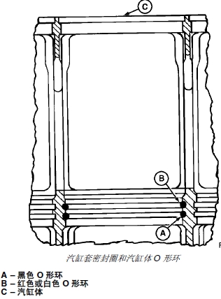 重要提示: 汽缸套在未裝 O 形環(huán)或密封圈時(shí),應(yīng)該能夠用手輕輕轉(zhuǎn)動(dòng)。如果不能轉(zhuǎn)動(dòng),需要拆下汽缸套并清潔汽缸體。