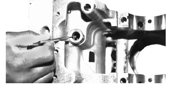 2. 在缸體內(nèi)和機油泵蓋中安裝新 O 形環(huán)(用于出油管)。將油管安裝到泵蓋和缸體上。