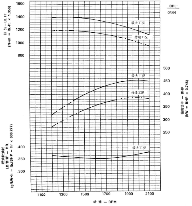 所有的數(shù)據(jù)均是基于康明斯發(fā)動機(jī)帶燃油泵、水泵、機(jī)油泵、空濾器和消聲器運(yùn)轉(zhuǎn)時(shí)獲得的,但不包括交流發(fā)電機(jī)、空壓機(jī)、風(fēng)扇、選用設(shè)備和驅(qū)動件。所有的數(shù)據(jù)都是基于SAE J1349標(biāo)準(zhǔn)規(guī)定的條件——海拔90m(300ft.),大氣壓力100kPa(29.61in.Hg),進(jìn)氣溫度25℃(77°F),水蒸汽壓力1.0kPa(0.30in.Hg),使用標(biāo)準(zhǔn)No.2號柴油或符合ASTM D2的柴油。數(shù)據(jù)隨時(shí)可能更改,恕不另行通知。