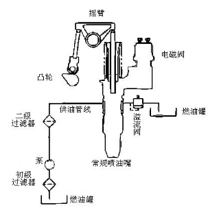 ECM通過(guò)變化的信號(hào)控制單體泵的噴油量。單體泵在電磁閥供電時(shí)噴油。ECM向單體泵電磁閥提供一個(gè)105VDC電壓信號(hào),這個(gè)電壓信號(hào)激活電磁閥。通過(guò)控制發(fā)動(dòng)機(jī)正時(shí)和電壓持續(xù)時(shí)間,ECM能夠控制噴油時(shí)間和噴油量。
