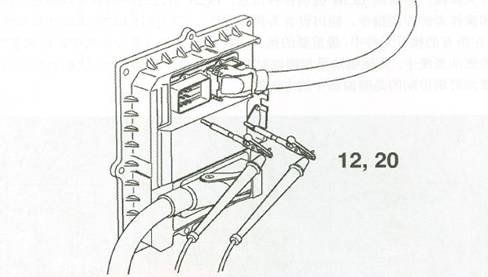 ~ 在對(duì)ECU(M)插頭內(nèi)的針腳進(jìn)行測(cè)量時(shí)一定要使用合適的轉(zhuǎn)接導(dǎo)線,不可以用萬(wàn)用表的表筆直接測(cè)量。