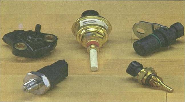 如圖所述,為了減少零件數(shù)目和使發(fā)動(dòng)機(jī)線束更簡(jiǎn)單,有些系統(tǒng)將溫度傳感器和壓力傳感器集成到一個(gè)傳感器中,比如測(cè)量進(jìn)氣壓力和溫度的進(jìn)氣壓力/溫度復(fù)合傳感器,測(cè)量機(jī)油壓力和溫度的機(jī)油壓力/溫度復(fù)合傳感器等。