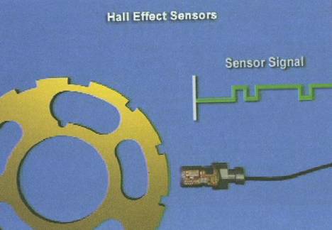 在速度信號(hào)輪上做出一個(gè)異形的輪齒或其他的標(biāo)記,速度傳感器即可以測(cè)量出曲軸或凸輪軸的位置,所以速度傳感器也可以是發(fā)動(dòng)機(jī)位置傳感器。通常我們將安裝在凸輪軸上的傳感器叫位置傳感器,安裝在曲軸上的傳感器叫速度傳感器。