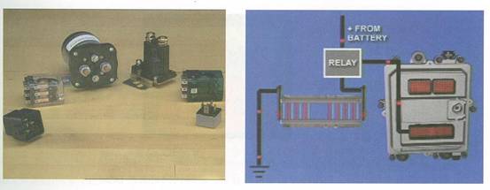 繼電器在電控系統(tǒng)中也被用作輸出設(shè)備,用于實(shí)現(xiàn)小電流對(duì)大電流的控制,或者一個(gè)電路對(duì)多個(gè)電路的控制。典型的如右圖所示的格柵加熱控制器,由于格柵加熱器的工作電流很大無(wú)法直接在ECU(M)上通過(guò),ECU(M)通過(guò)控制一個(gè)繼電器來(lái)控制格柵加熱器的工作。ECU(M)對(duì)繼電器的控制電流最大可達(dá)到2安培。