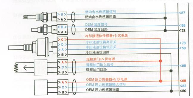 需要指出的是,在實(shí)際的設(shè)備中,主機(jī)廠的電路連接不會(huì)完全和康明斯原裝電路圖中的接法一樣。這是因?yàn)榭得魉闺娐穲D中推薦的接法包含了發(fā)動(dòng)機(jī)所有的特性,而主機(jī)廠在安裝時(shí)有些控制功能可能不啟用,或者在康明斯允許的前提下對(duì)電路作一定的改動(dòng)。