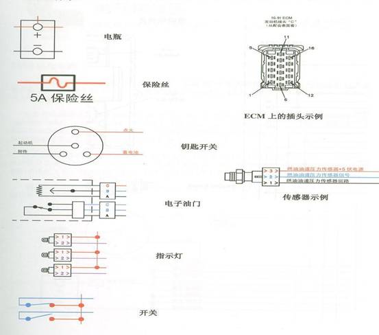 輸入設(shè)備由ECU(M)提供工作電源,大部分輸入設(shè)備的工作電壓都為5伏。