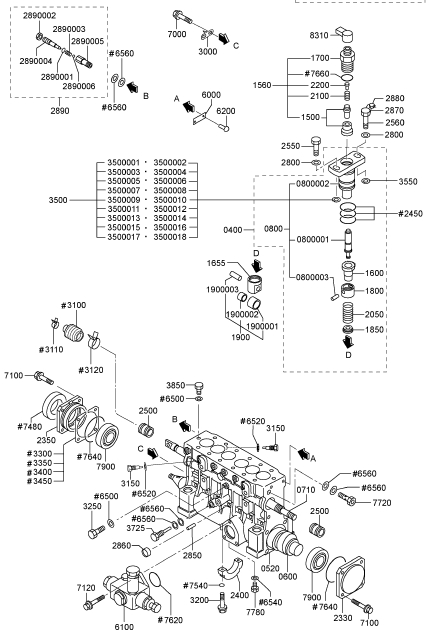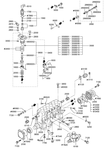 此目錄里使用的用于安裝的螺栓中,帶墊圈螺栓在記事欄里表示為"B/W"。(零部件名稱(chēng):BOLT、