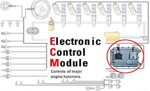 • 1、 ECM電子控制模塊,2、 噴油泵,3、 傳感器,4、 開關,5、 連接線纜
