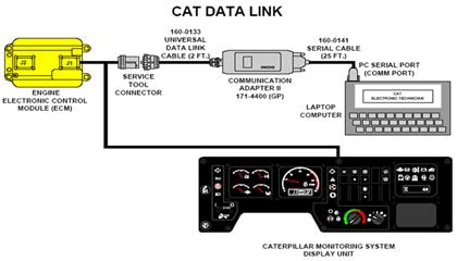 • 因為CAT數據總線的封閉性(非公開通訊協議),外部設備必須通過一種通訊協議轉換器(用戶通訊模塊“CCM”)才可以與發(fā)動機ECM通訊。
