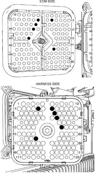 圖18J1/P1 ECM接頭(發(fā)動機左視圖)gO1214624