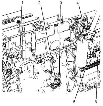 圖57gOH42382壓力傳感器位置(發(fā)動(dòng)機(jī)左側(cè)視圖)(1) 進(jìn)氣歧管壓力傳感器(2) 燃油壓力感應(yīng)塞(3) 大氣壓力感應(yīng)塞(4) 機(jī)油壓力感應(yīng)塞(5) J2/P2 ECM 接頭 (6) J1/P1 ECM 接頭 圖59P2 ECM接頭的端子位置(P2-15) 進(jìn)氣歧管壓力傳感器 (P2-17) 傳感器回線 (P2-28) 機(jī)油壓力傳感器 (P2-40) 燃油壓力傳感器 (P2-57) 大氣壓力傳感器(P2-72) 傳感器電源g01204484圖58空濾器總成(7) 渦輪增壓器進(jìn)氣壓力傳感器(980H)gO1142856