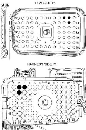 圖60P1 ECM接頭端子位置(980H)(P1-2) 傳感器電源 (P1-3) 傳感器回線