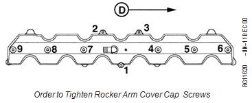 4. Install rocker arm cover gasket and cover. Tighten rocker arm cover cap screws to specifications.