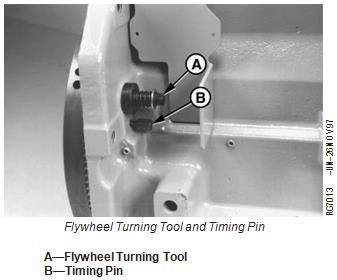 4. Rotate engine with the flywheel turning tool until timing pin engages timing hole in flywheel.