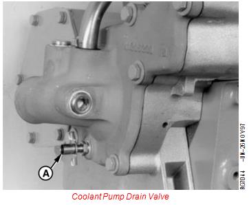 A—Coolant Pump Cover Drain Valve B—Block Drain Valve