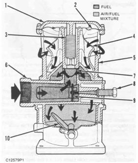 注:此處描述的是單氣閥化油器的操作。雙氣閥化油器的操作與單氣閥化油器操作相同。