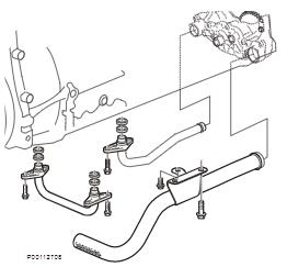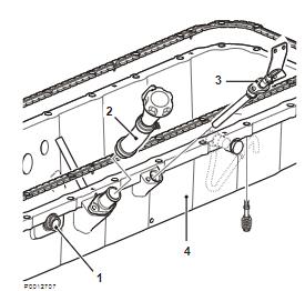 3 僅適用于 D13B-A/C/G/H/K/L,D13C2-A,D13C4-A(雙渦輪)將廢氣門閥回油管從油底殼上拆下。