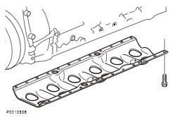 11 徹底清潔油底殼。檢查油底殼橡膠密封件是否需要更換。去掉前曲軸密封蓋上的多余密封劑。去掉正時盤和飛輪殼上的多余密封劑。在接頭處涂抹新的密封劑并在 20 分鐘內(nèi)安裝油底殼。