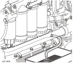 7 用手泵(1)對燃油系統(tǒng)進行通風。通風后過濾器中的空氣通過回流管路被壓出。