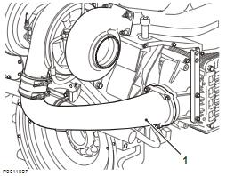 9 將增壓空氣冷卻器安裝到下部螺柱上。將螺柱連接導(dǎo)入增壓空氣管并導(dǎo)入冷卻水軟管。注意 確保軟管上有軟管夾。將增壓空氣冷卻器按壓到位;安裝上部螺栓并將螺母擰至螺柱上。緊固螺母。