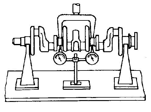 (2) the bending deformation of the inspection. At both ends of the crankshaft with v-shaped block bearing on the tablet, with a dial indicator contact touch in the middle of the spindle neck surface, as shown in figure 3-2. A week and then turn the crank, table pointer is the difference between the maximum and minimum readings, is the middle main journal for main journal on both ends of the radial circular runout error, the error, such as more than 0.10 mm, should replace the crankshaft.