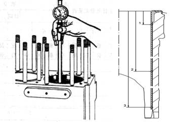 注意:結合氣閥導筒內(nèi)徑的測量結果,計算閥桿及導筒的間隙。當間隙超過更換極限時,更換磨損嚴重的閥。